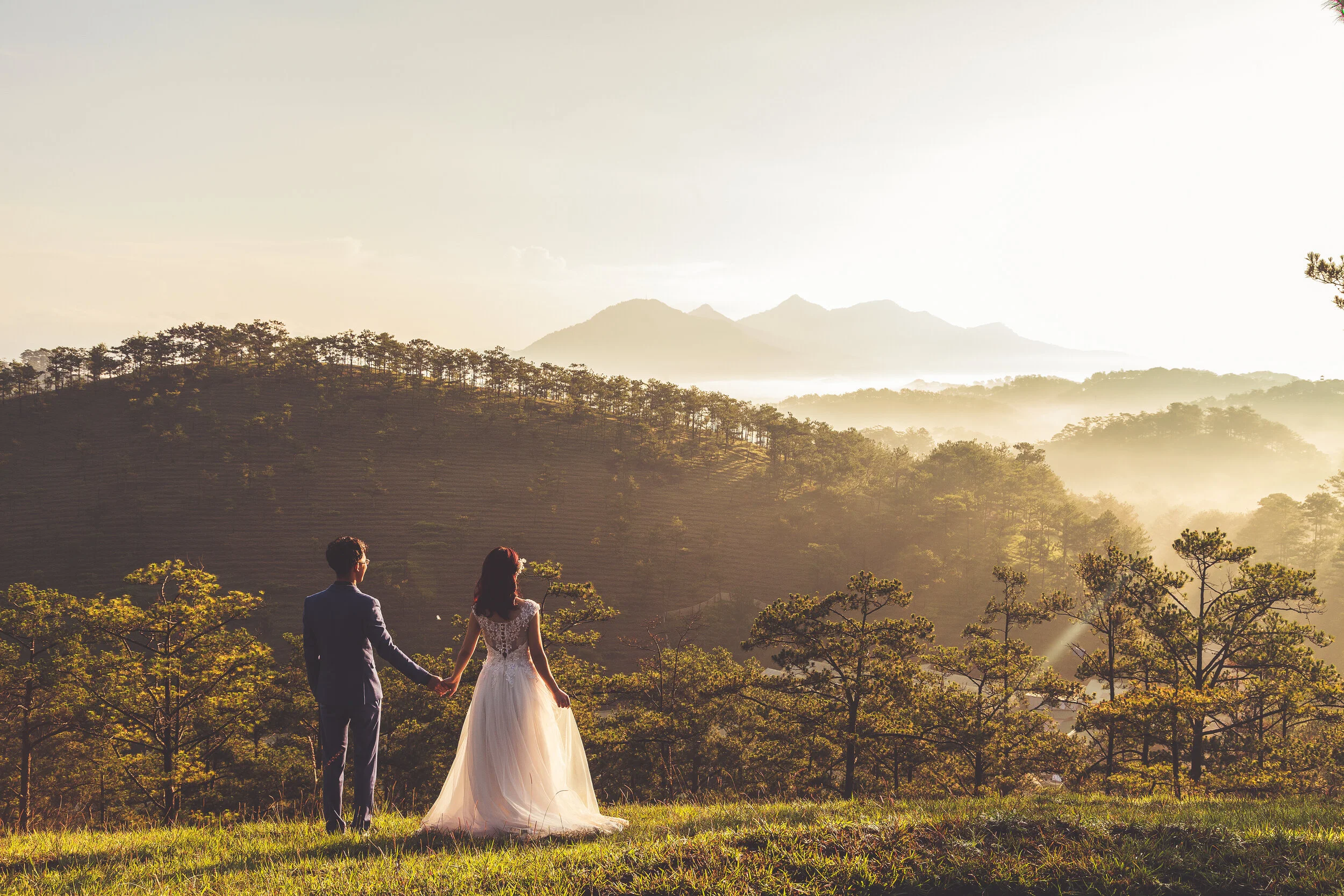 The ceremony takes place on a downslope which gives way to a backdrop of beautiful plains and staggering ranges – the type of landscape where rosellas swoop in delight and retired horse races nestle to stud.